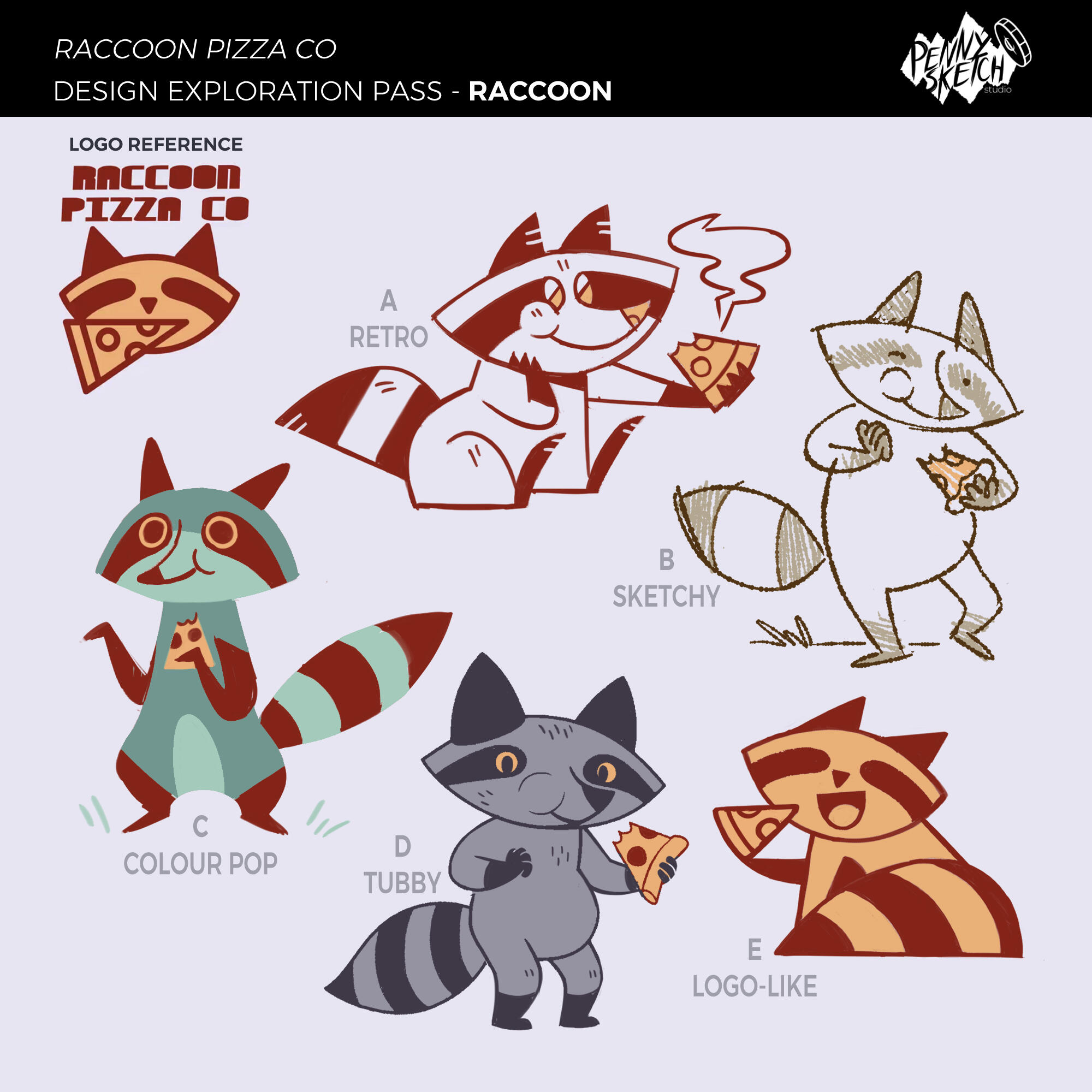 ⇦ Raccoon Pizza Co has asked for a cute mascot based on their logo.